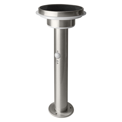 Apparecchi a lanterna a energia solare con sensore di movimento e di luce, due cerchi. Caratteristiche prodotto: Apparecchi LED per esterni ad energia solare. Rilevatore di movimento PIR e sensore di luminosità. 3 modalità operative selezionabili. Modalità operativa 1: luce continua accesa con 200 lumen (max. 2,5 ore a piena carica). Modalità operativa 2: luce continua accesa con 75 lumen (massimo 8 ore a piena carica), passa a 300 lumen durante lo spostamento (massimo 100 volte illuminata a piena carica). Modalità operativa 3: luce spenta, passa a 400 lumen durante lo spostamento (max. 100 volte illuminate a piena carica). Ricarica della batteria tramite pannelli solari. Tecnologia della batteria: litio-ione. Corpo in acciaio inossidabile. Vantaggi prodotto: Illuminazione a richiesta e risparmio energetico grazie al sensore di movimento e luce diurna. Facile regolazione della luce diurna e rilevamento del movimento tramite interruttore a pressione. Energeticamente efficiente grazie alla tecnologia LED. Installazione facile e veloce. Aree applicative: Per esterni (IP44). Aree in cui non c'è alimentazione disponibile. Apparecchiatura / Accessori: Tutti gli accessori per il montaggio e la connessione inclusi.