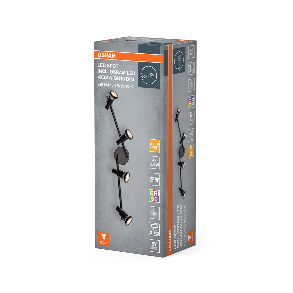 OSRAM LED SPOT GU10 Deckenleuchte 4 x 3,4W, 920lm, schwarz