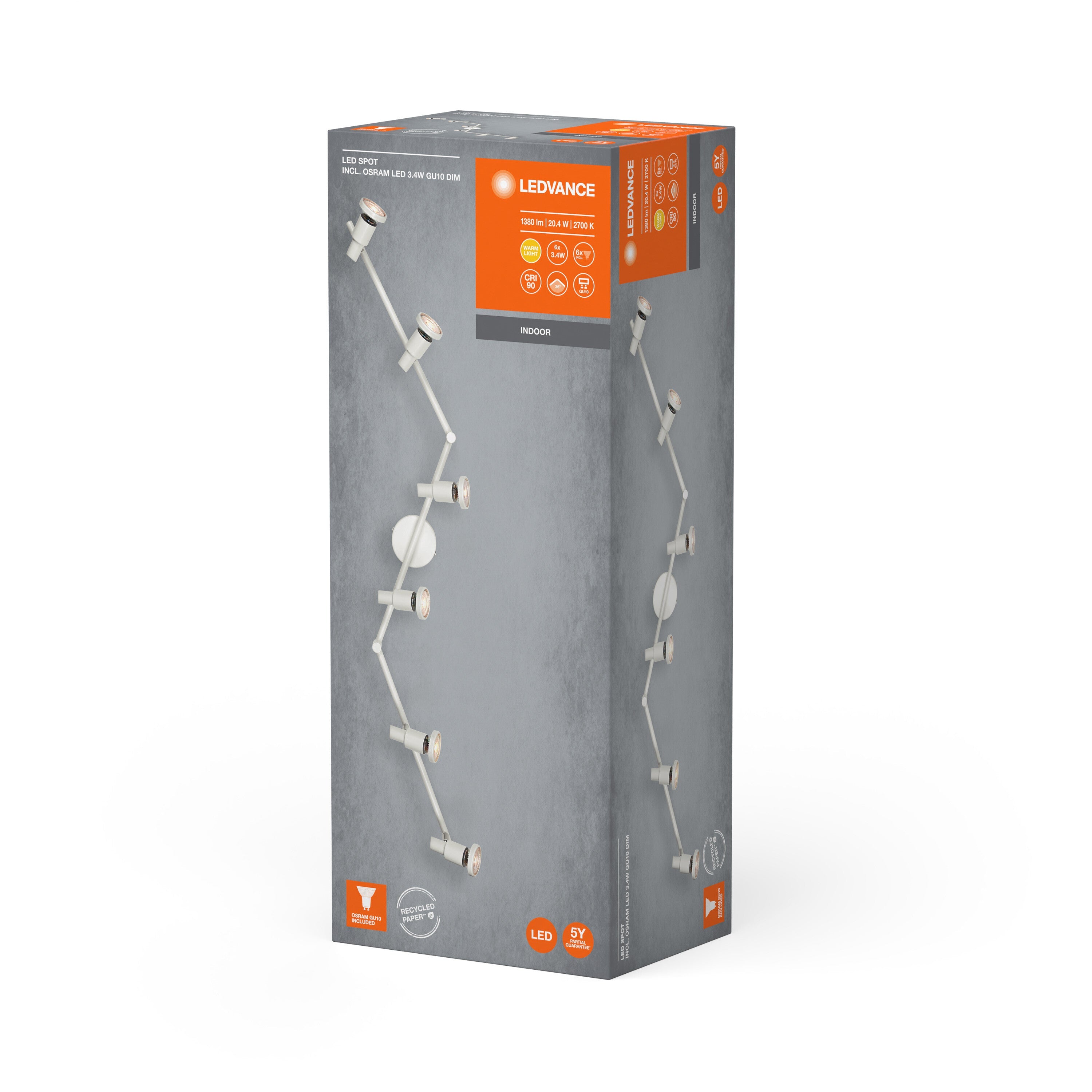LEDVANCE LED SPOT GU10 Deckenleuchte 6 x 3,4W, 1380lm, weiß