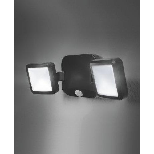 Proiettori per esterni con diffusore doppio. Caratteristiche prodotto: Flusso luminoso fino a 480 lm. Sensore di luminosità e movimento integrato. Durata della batteria in operatività continua: fino a 5 h. Classe di protezione: IP54. Vantaggi prodotto: Illuminazione a richiesta e risparmio energetico grazie al sensore di movimento e luce diurna. Indipendente dall'alimentazione elettrica grazie alla batteria. Energeticamente efficiente grazie alla tecnologia LED. Aree applicative: Esterni. Aree in cui non c'è alimentazione disponibile. Apparecchiatura / Accessori: Viti e tasselli di montaggio inclusi. Batterie richieste: 4xD (non incluse nel materiale di spedizione).