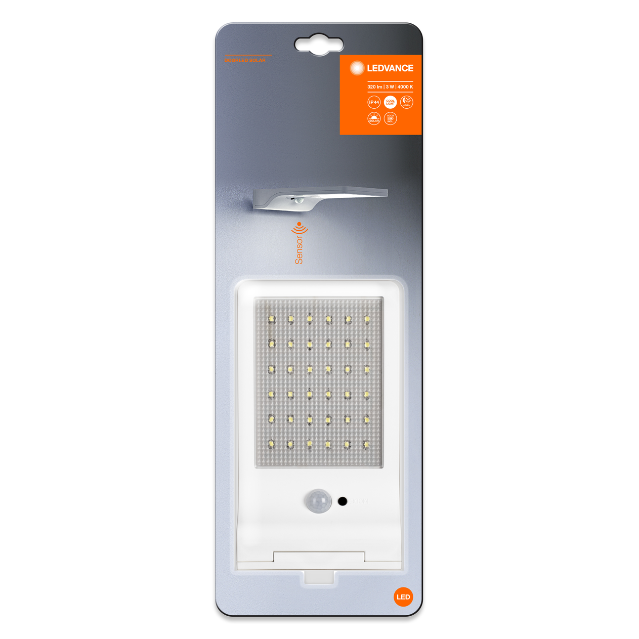 Apparecchi da esterno a energia solare. Caratteristiche prodotto: Apparecchi LED per esterni ad energia solare. Ricarica della batteria tramite pannelli solari. Tecnologia della batteria: litio-ione. Tempo di ricarica minimo della batteria 7h, in base alla posizione del prodotto e all'esposizione alla luce solare. Tipo di protezione: IP44. Vantaggi prodotto: Illuminazione a richiesta e risparmio energetico grazie al sensore di movimento e luce diurna. Indipendente dall'alimentazione elettrica grazie alla batteria. Energeticamente efficiente grazie alla tecnologia LED. Aree applicative: Esterni. Aree in cui non c'è alimentazione disponibile. Apparecchiatura / Accessori: Tutti gli accessori per il montaggio e la connessione inclusi.