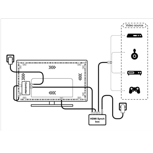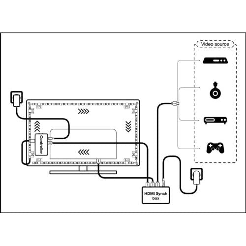 HDMI Synch LED Strips with WiFi technology and MAGIC RGB. Caratteristiche prodotto: Dimmerabile. Controllo dei colori RGB; circa 16 milioni di opzioni cromatiche disponibili. DIY function: You can adjust the color segment per segment and create your own lighting scenes or just use already available lighting scenes. Controllabile tramite l'app LEDVANCE SMART + WiFi (con Android™️ 4.4 o iOS 10.0 minimo). Strisce LED flessibili e pieghevoli. Vantaggi prodotto: Installazione facile e veloce. MAGIC RGB Color Control for maximum flexible selection. Synchronize the Smart Flex Strip with the content on your screen. Aree applicative: Spazi abitabili. Illuminazione indiretta. Home Entertainment areas. Gaming corners. Applicable TV size 55”-65” (140-165 cm). Apparecchiatura / Accessori: Tutti gli accessori per il montaggio e la connessione inclusi. Synchronization Box and Control Box included. Connection cable included.