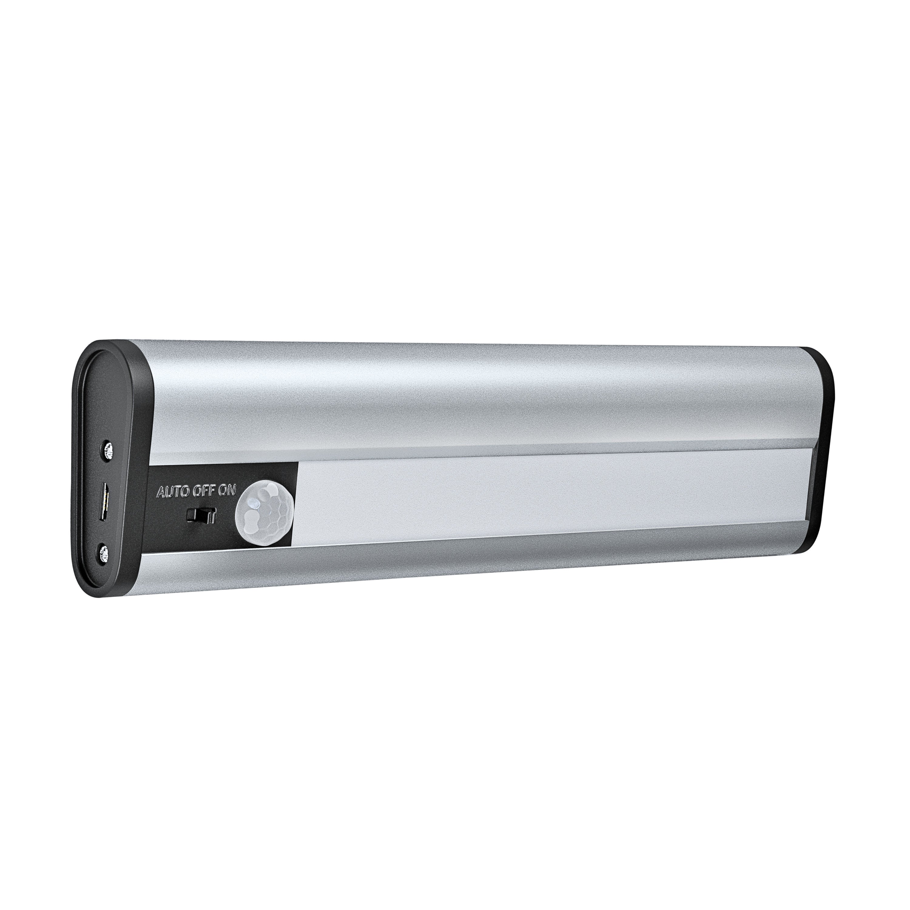 Apparecchi per sottopensili per montaggio flessibile, con sensori di movimento, alimentati a batteria, ricaricabili. Caratteristiche prodotto: Materiale dell'alloggiamento: alluminio. Sensore di luminosità e movimento integrato. Interruttore per accensione automatica oppure manuale. Batteria ricaricabile tramite cavo USB. Vantaggi prodotto: Design funzionale e attraente. Economicità grazie al ridotto consumo energetico. Installazione facile e veloce. Aree applicative: Per una vastissima gamma di applicazioni. Solo per uso in interni. Da integrare negli scaffali, nei mobili o da installare come sottopensile.