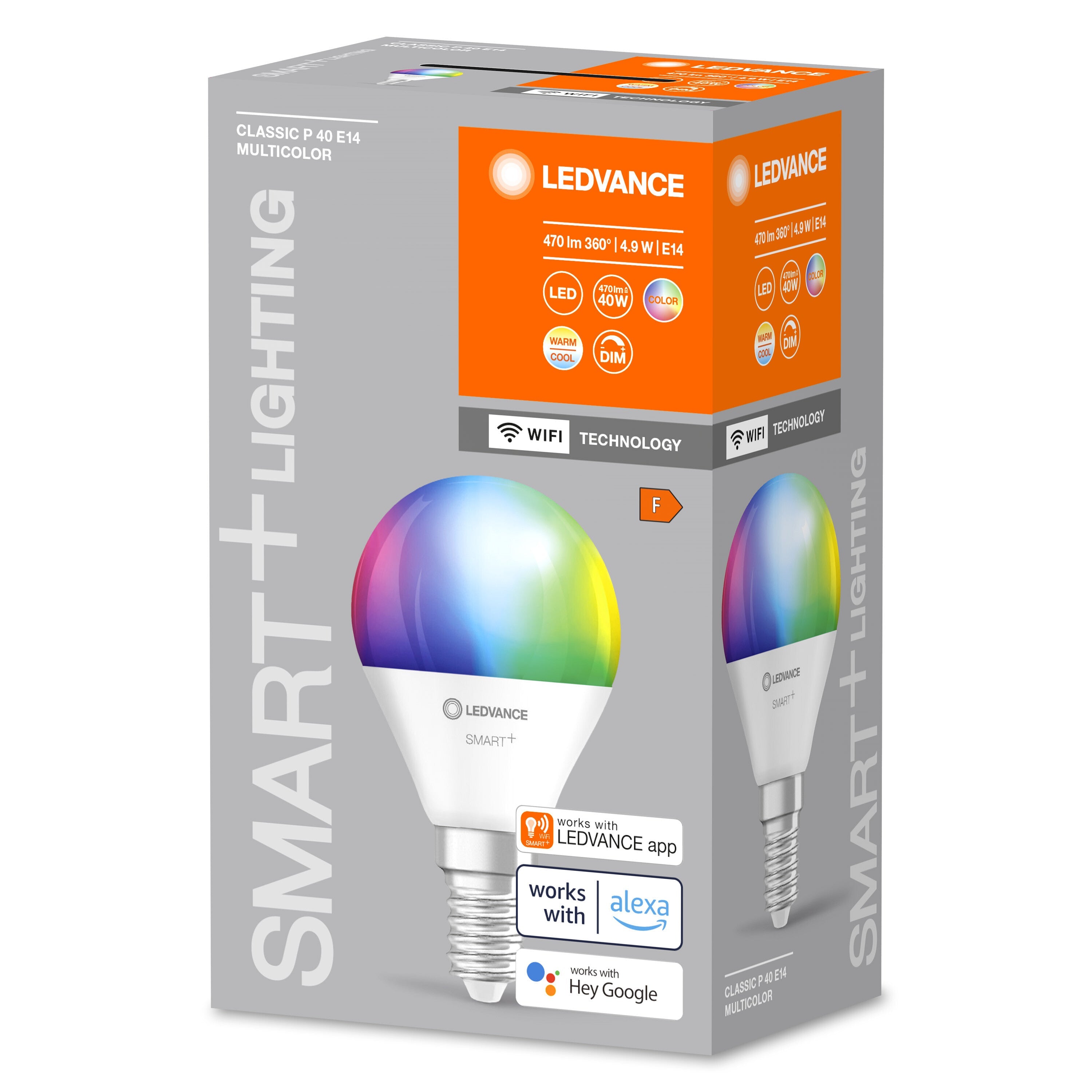 Lampada forma classica mini con tecnologia WiFi. Caratteristiche prodotto: Controllable via LEDVANCE SMART+ App (with minimum Android 8.0 or iOS 14.0). Temperatura di colore regolabile tramite Tunable White: da Warm White a Daylight (da 2.700 a 6.500 K). Controllo dei colori RGB; circa 16 milioni di opzioni cromatiche disponibili. Dimmerabile. Protocollo di rete: WiFi. Durata: fino a 20.000 ore. Voice control works with Hey Google or Alexa. Vantaggi prodotto: Controllo wireless tramite App. Facile da installare e utilizzare. Non contiene mercurio. Aree applicative: Illuminazione generale. Interni residenziali. Ambito professionale (hotel, bar, boutiques ecc). Outdoor use in suitable outdoor luminaires only. Apparecchiatura / Accessori: For control via LEDVANCE SMART+ App, a smartphone or tablet is required (with minimum Android 8.0 or iOS 14.0).