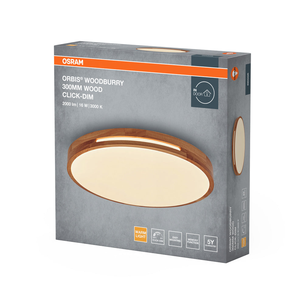 OSRAM ORBIS Woodburry Deckenleuchte dimmbar Click-DIM 16W 300mm Holz