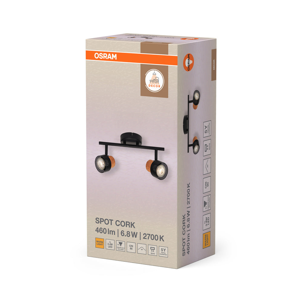 OSRAM DECOR SPOT CORK lampada da soffitto, 2 x 3,4W, 460lm, nero