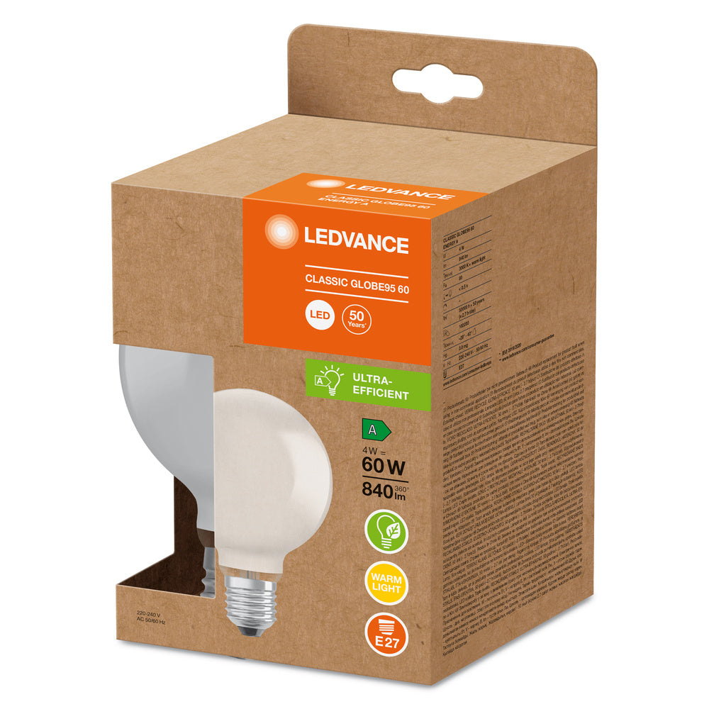LEDVANCE LED Lampada Classe di efficienza energetica A Filamento Classic Globe Opaco, 4W/3000K, E27