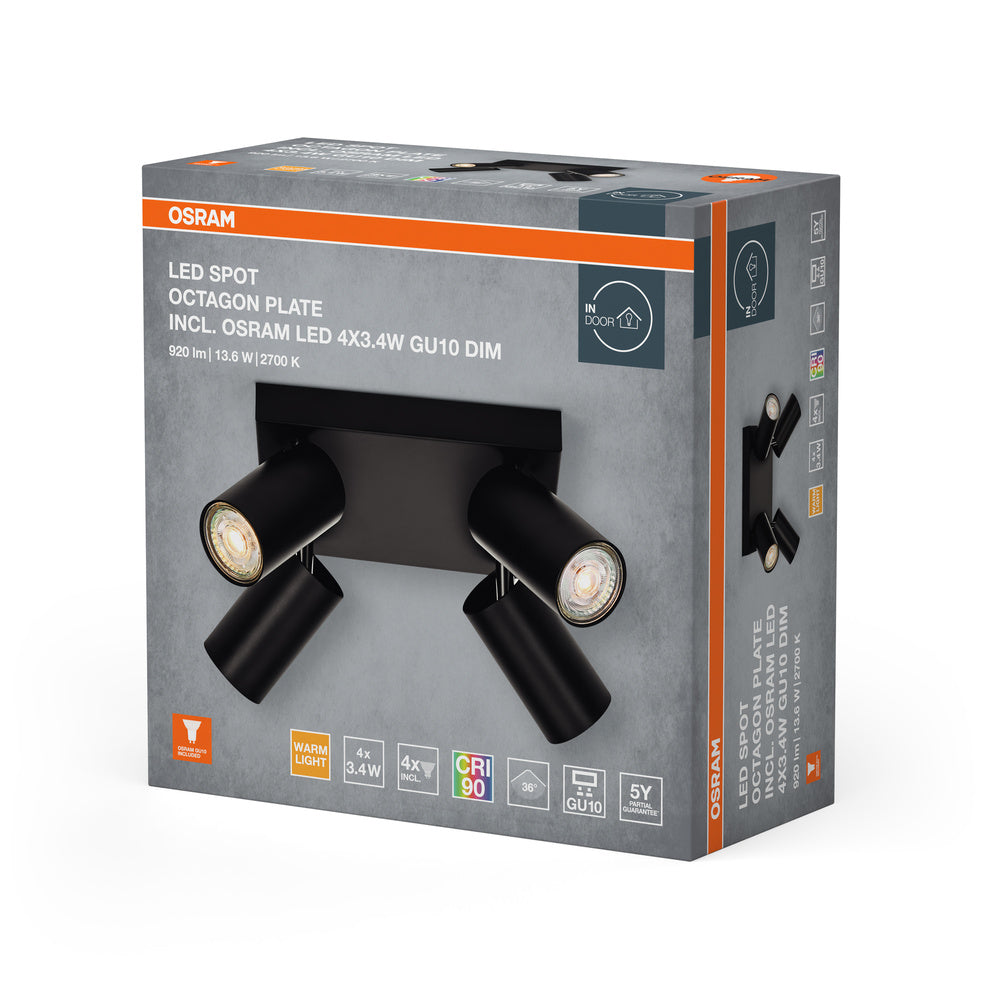 OSRAM LED SPOT OCTAGON PL Lampada da soffitto 4 x 3,4W, GU10, 920lm, nero