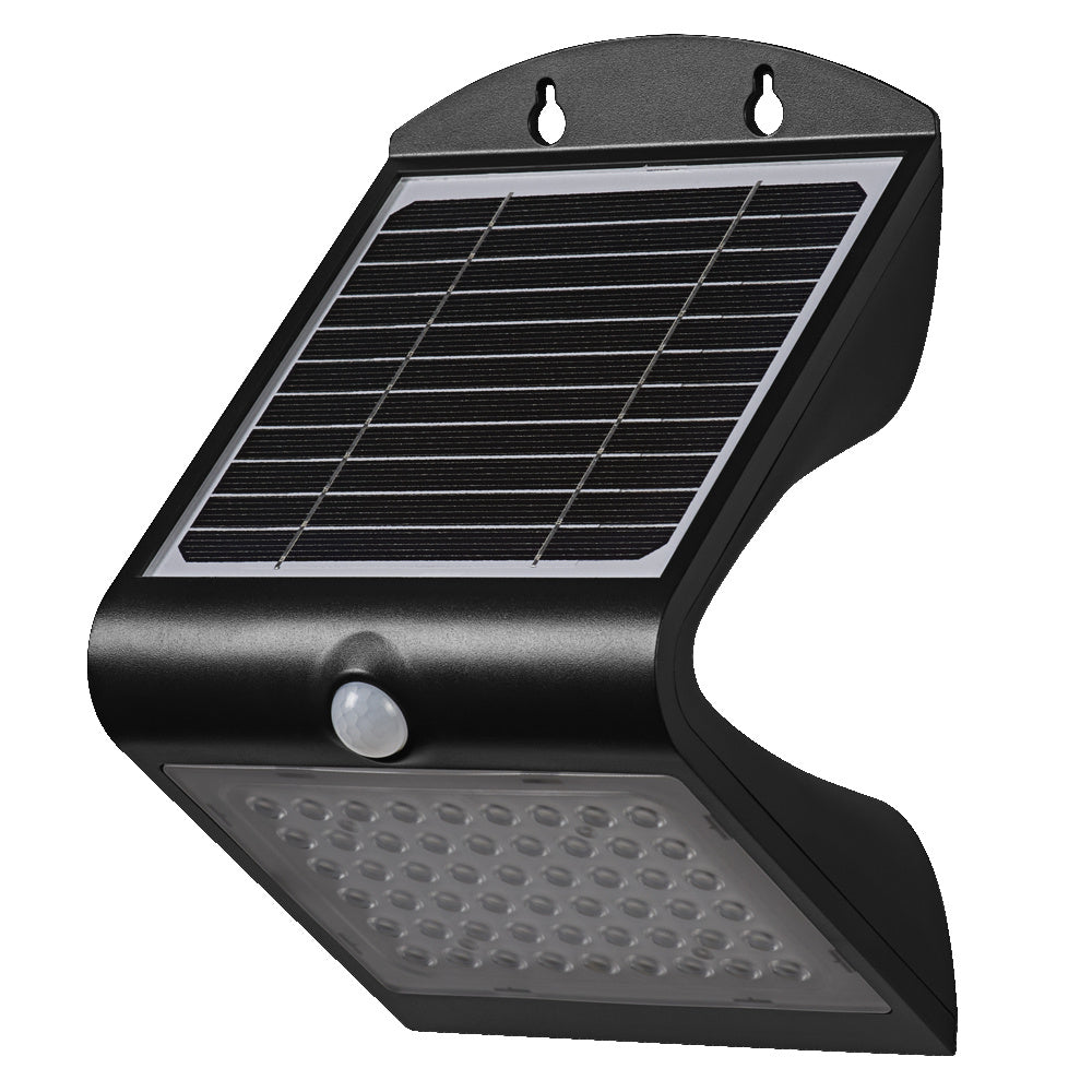 Solar-powered flood luminaire in Butterfly design with motion and light sensor. Caratteristiche prodotto: Apparecchi LED per esterni ad energia solare. Rilevatore di movimento PIR e sensore di luminosità. Ricarica della batteria tramite pannelli solari. Vantaggi prodotto: Eco-friendly solar powered light. Energeticamente efficiente grazie alla tecnologia LED. Installazione facile e veloce. Aree applicative: Esterni. Garage. Facciate di edifici. Apparecchiatura / Accessori: Tutti gli accessori per il montaggio e la connessione inclusi.