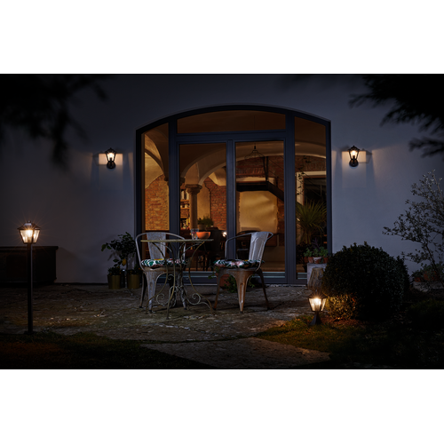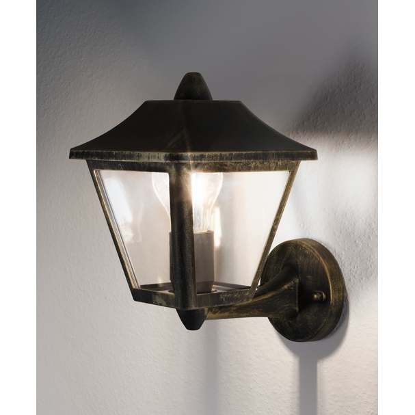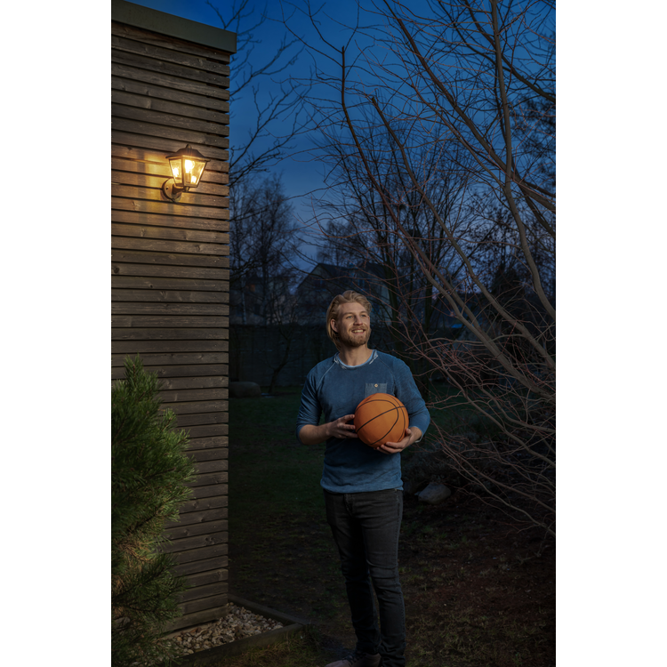 Lanterna dal design classico con corpo in alluminio. Caratteristiche prodotto: Corpo in alluminio pressofuso. Diffusore in policarbonato chiaro. Disponibile con e senza sensore di movimento. Disponibili come apparecchi a parete o paletti. Vantaggi prodotto: Grande flessibilità nella scelta della sorgente luminosa grazie all'attacco E27. Adatto per applicazioni smart grazie alla compatibilità con le lampade Smart+ di LEDVANCE. Installazione facile e veloce. Aree applicative: Per esterni (IP44). Facciate di edifici. Illuminazione per l'ingresso. Terrazze, balconi. Illuminazione di sentieri. Viali d'accesso. Apparecchiatura / Accessori: Tutti gli accessori per il montaggio e la connessione inclusi. Nessuna sorgente luminosa inclusa.