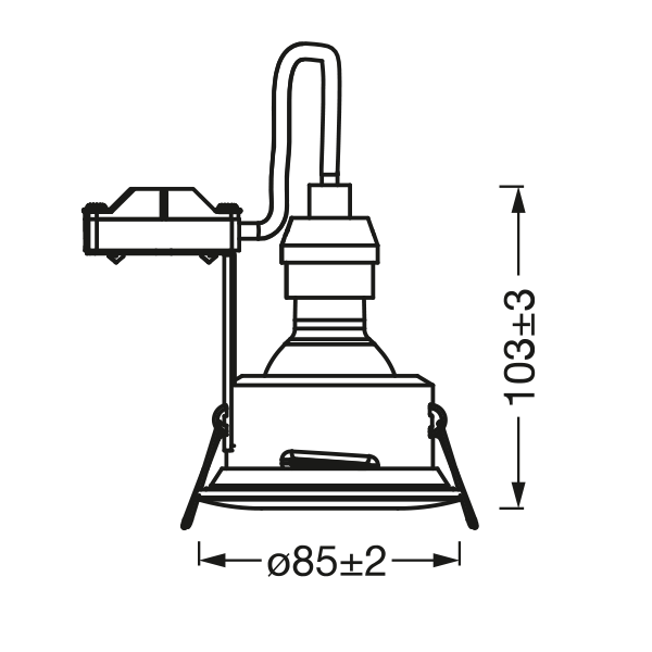 Recess ceiling light with GU10 lamp included and IP65. Caratteristiche prodotto: Lampada GU10 inclusa. Grado di protezione: IP65. Materiale dell'alloggiamento: metallo. Vantaggi prodotto: Lampada Osram inclusa. Aree applicative: Applicazioni in interni. Bagni. Apparecchiatura / Accessori: Tutti gli accessori per il montaggio e la connessione inclusi.