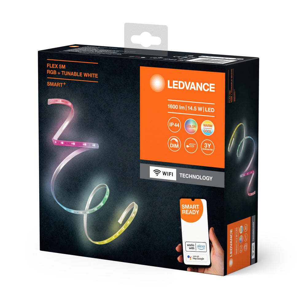 Decorative LED Strips for outdoor use with WiFi technology. Caratteristiche prodotto: Dimmerabile. Controllo dei colori RGB; circa 16 milioni di opzioni cromatiche disponibili. Temperatura di colore regolabile tramite Tunable White: 2.700…6.500 K. Controllable via LEDVANCE SMART+ App (with minimum Android 8.0 or iOS 14.0). Strisce LED flessibili e pieghevoli. Tipo di protezione: IP44. Vantaggi prodotto: Installazione facile e veloce. Utilizza una luce mullticolore e una luce bianca fredda o calda per molti scenari di illuminazione flessibili. Aree applicative: Applicazioni per esterni. Illuminazione indiretta. Apparecchiatura / Accessori: Controllo via app o voce con sistemi Smart home compatibili. For control via LEDVANCE SMART+ App, a smartphone or tablet is required (with minimum Android 8.0 or iOS 14.0). Tutti gli accessori per il montaggio e la connessione inclusi.