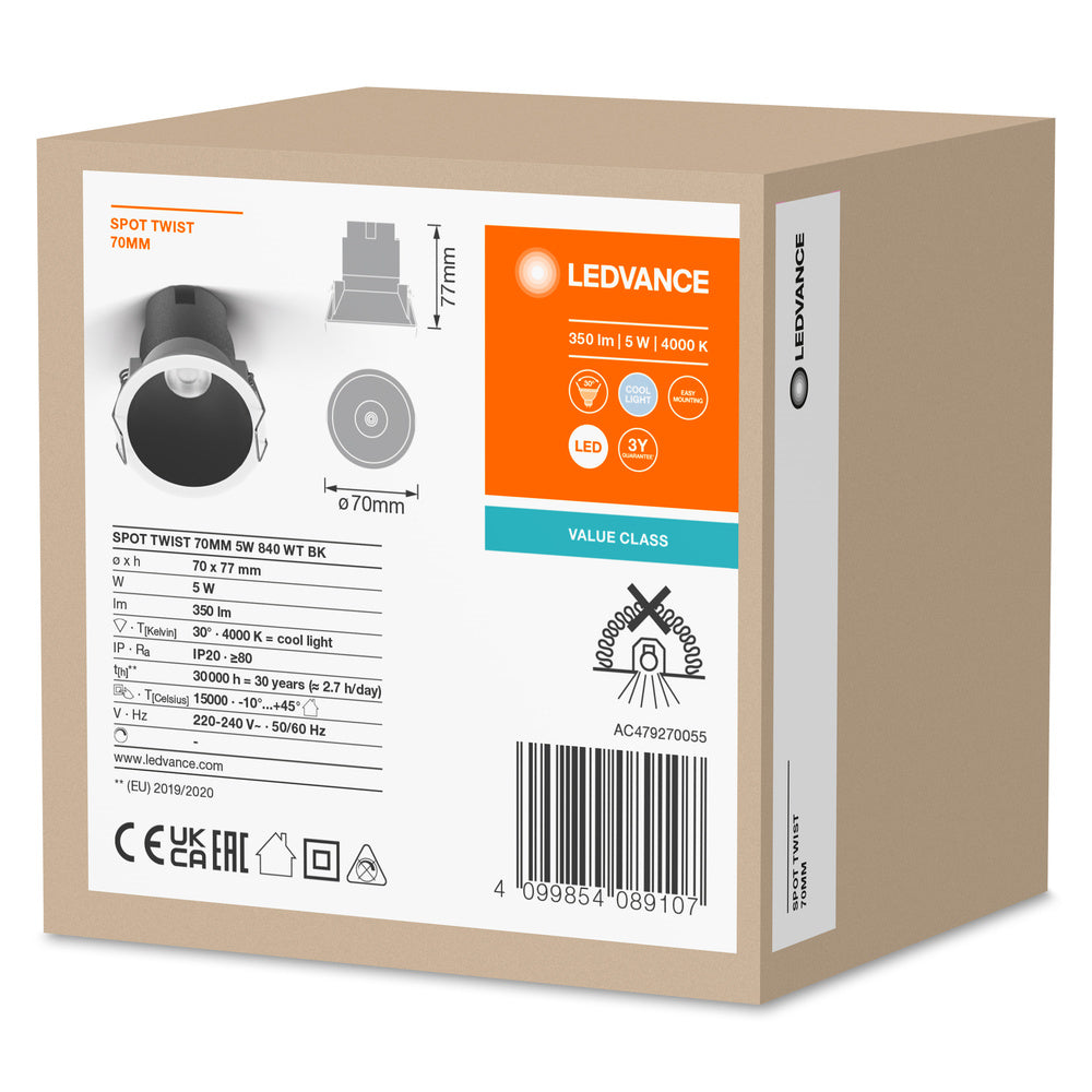 Recessed spotlight with LED integrated. Caratteristiche prodotto: Silicon-pad protected springs. Vantaggi prodotto: Risparmio energetico fino al 90% rispetto alle lampade alogene Spotlight. Facile installazione e collegamento elettrico grazie ai connettori elettrici senza attrezzi. Aree applicative: Applicazioni in interni. Illuminazione generale. Apparecchiatura / Accessori: Connector box not included.