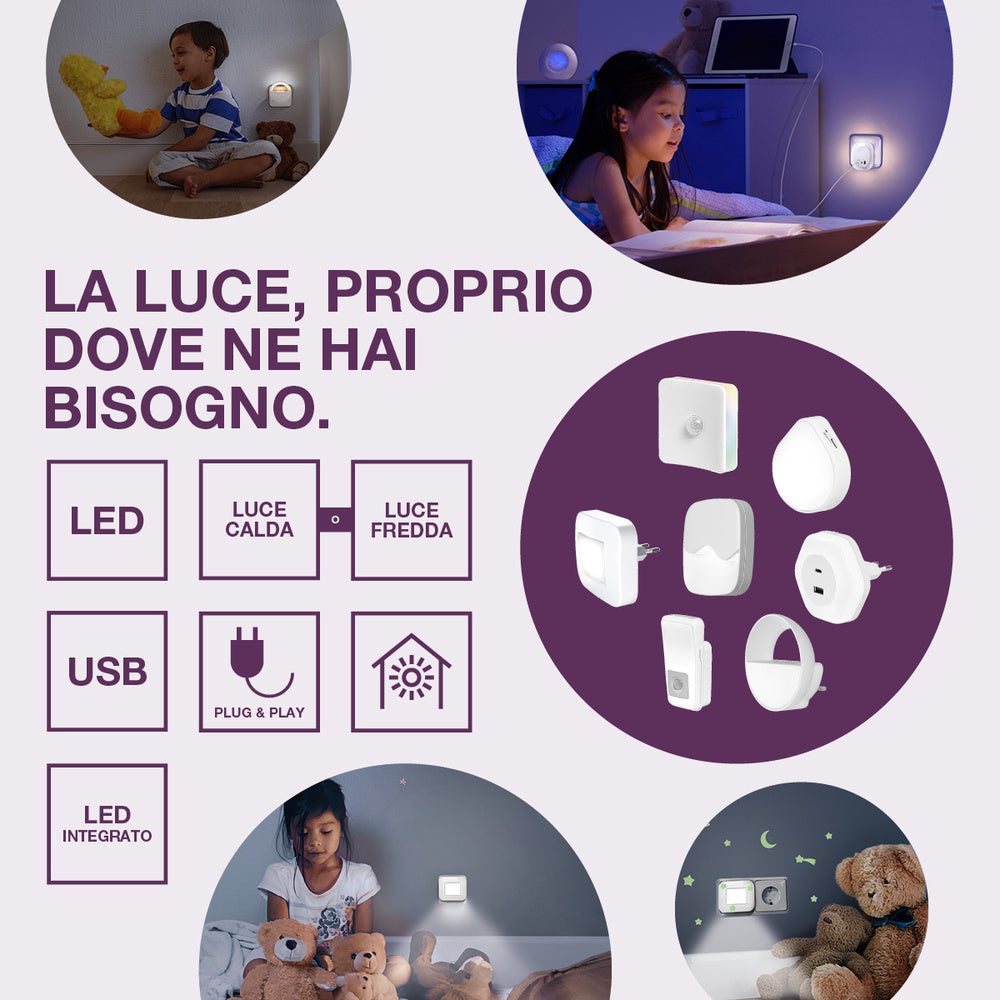 Caratteristiche del prodotto: sensore integrato di luce e movimento.