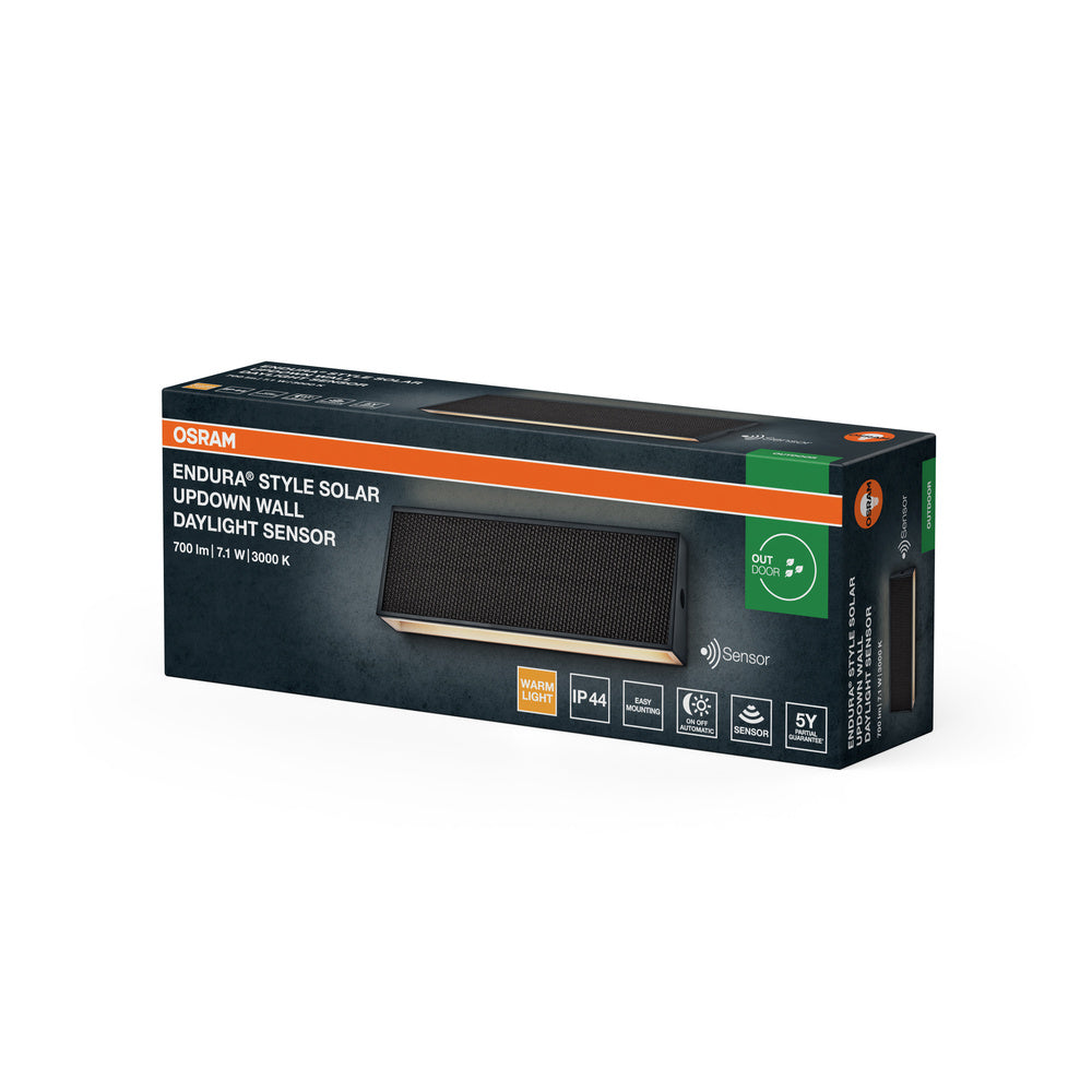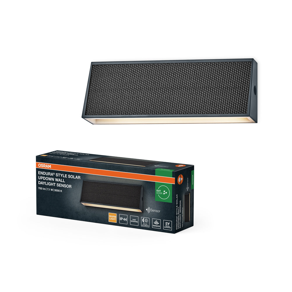 Luci solari con fascio luminoso rivolto verso l'alto e verso il basso, alto flusso luminoso, sensore di luce diurna e opzione classe di protezione IP65.