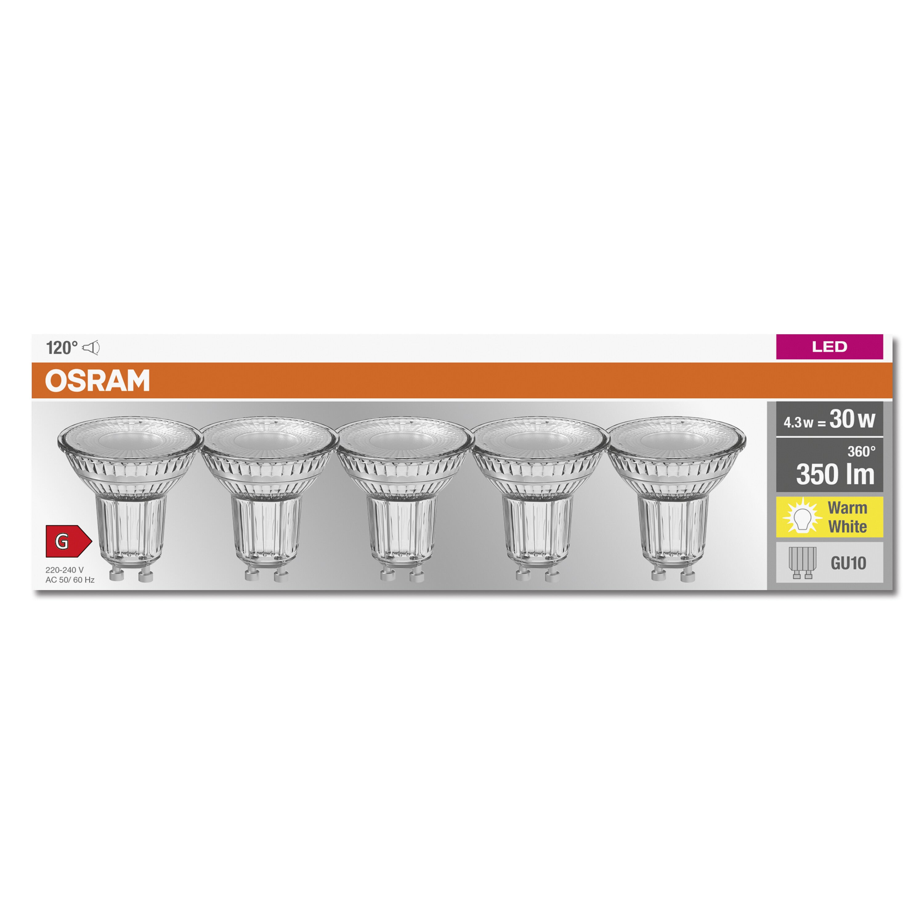OSRAM LED BASE PAR16 Spot (ex 50W) 4,3W / 2700K Bianco caldo GU10 5 pezzi