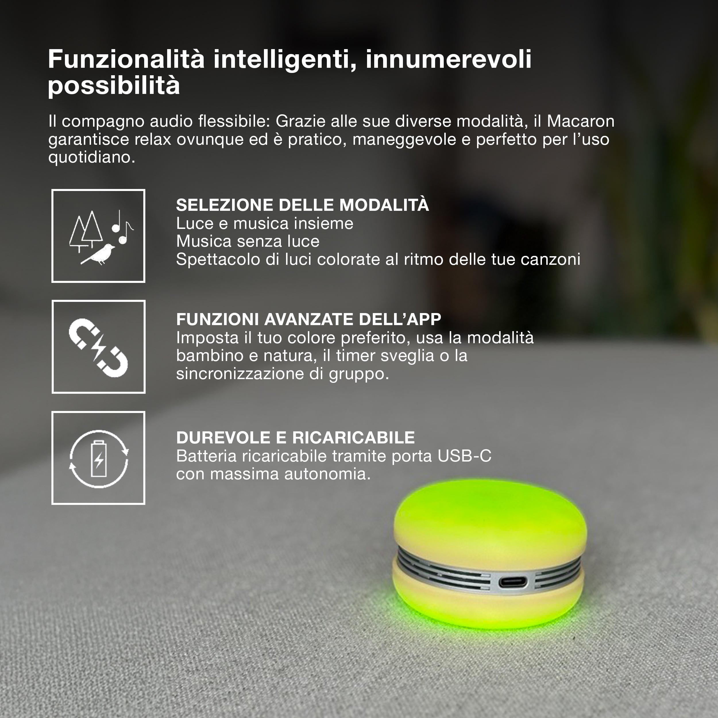 Altoparlante Bluetooth portatile con design elegante ispirato ai Macarons