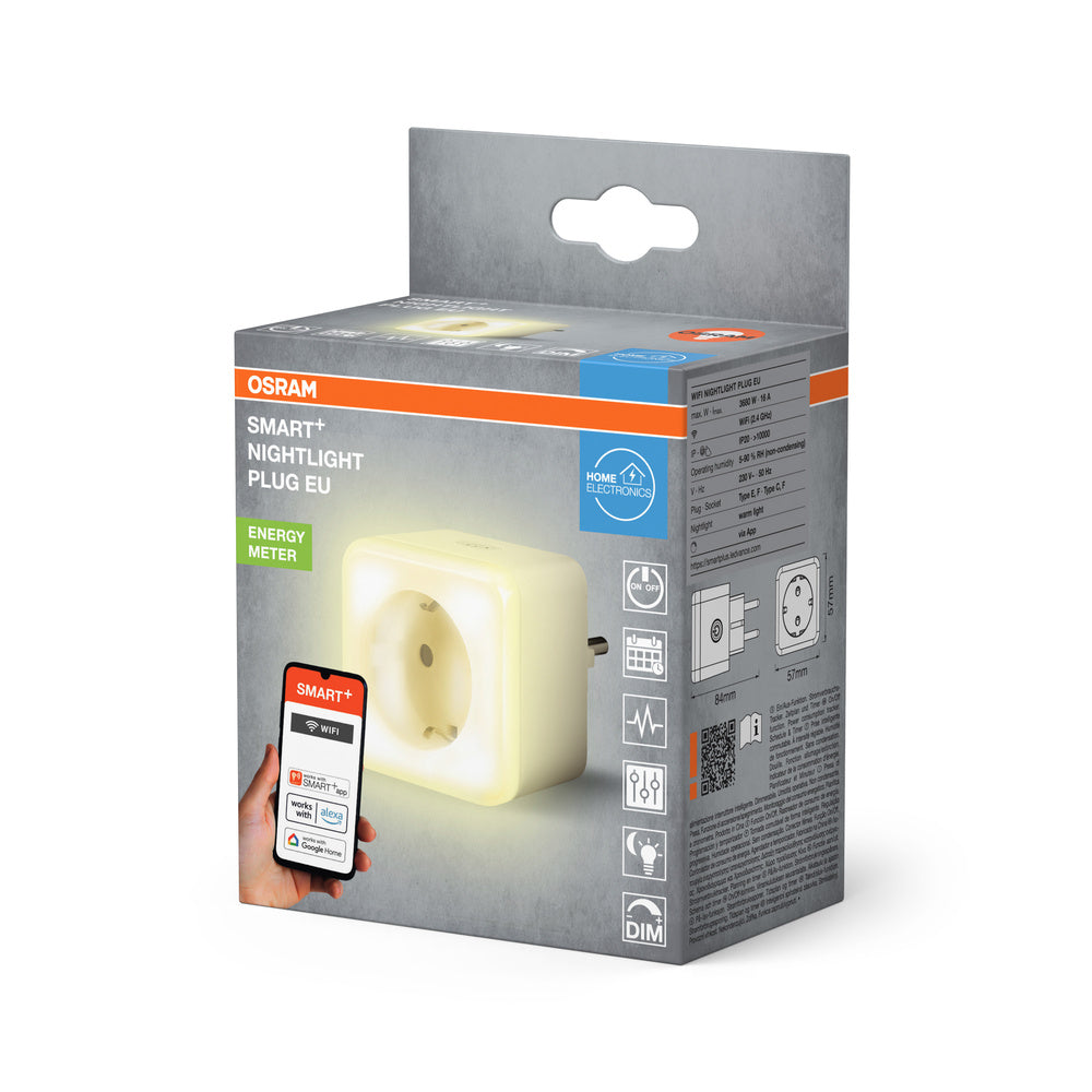 Presa intelligente con luce notturna integrata controllabile tramite tecnologia WiFi.