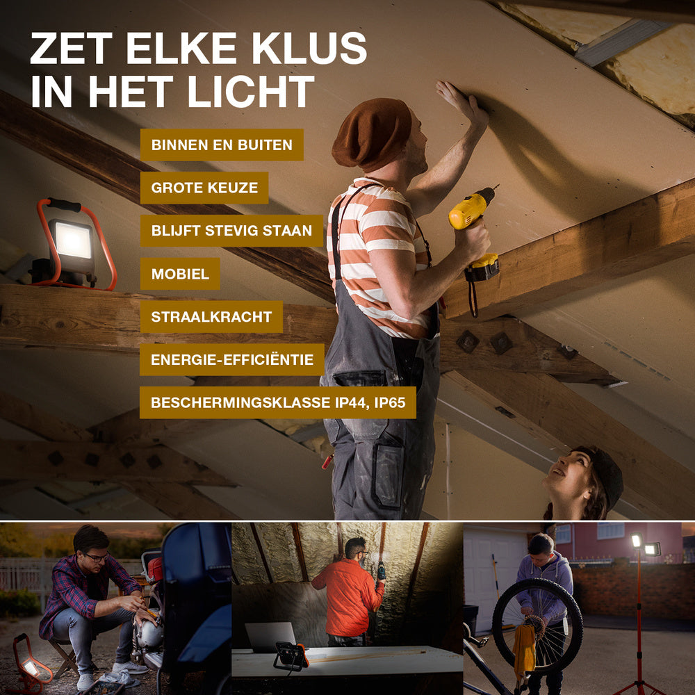 Vantaggi del prodotto: risparmio energetico fino all'80% rispetto alle lampade alogene da lavoro.