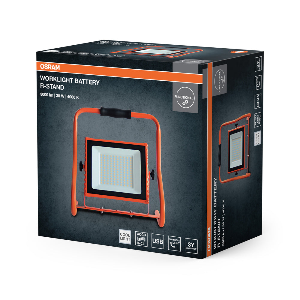 OSRAM LAMPADE DA LAVORO BATTERIA R-STAND Akku USB LED Faretto da cantiere 30W / 4000K